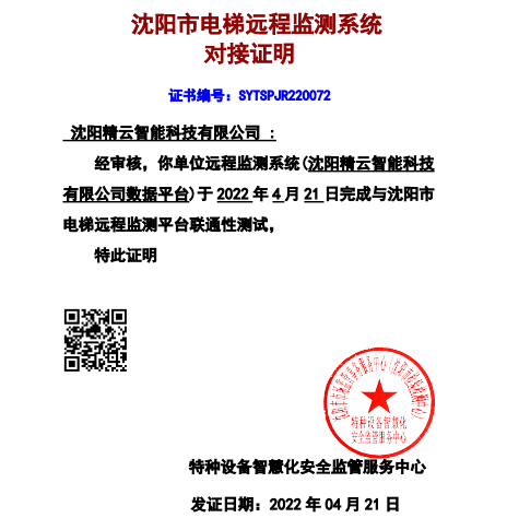 電梯物聯(lián)網(wǎng)設(shè)備通過沈陽(yáng)市電梯遠(yuǎn)程監(jiān)測(cè)系統(tǒng)驗(yàn)證